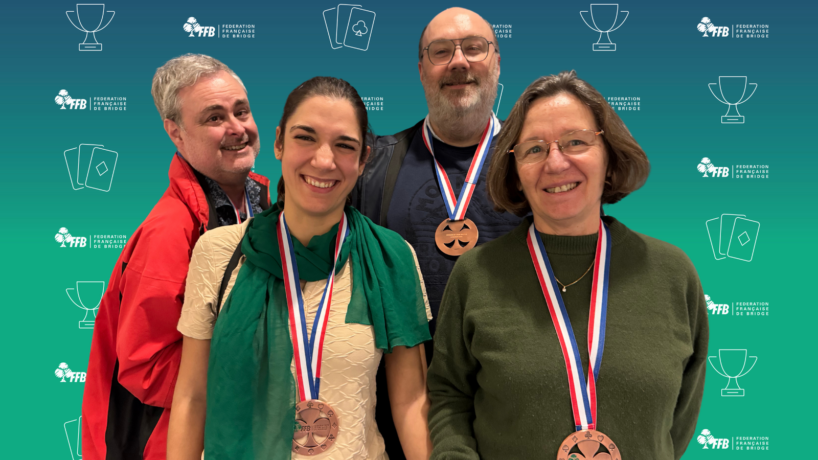 M. Xavier DUPUIS M. Hervé FLEURY M. Wilfried LIBBRECHT Mme Anne ROUANET LABE Mme Michèle ROUANET LABÉ Mme Laurence GIRARD qui terminent sur le poduim 3° de la finale nationale division de ligue